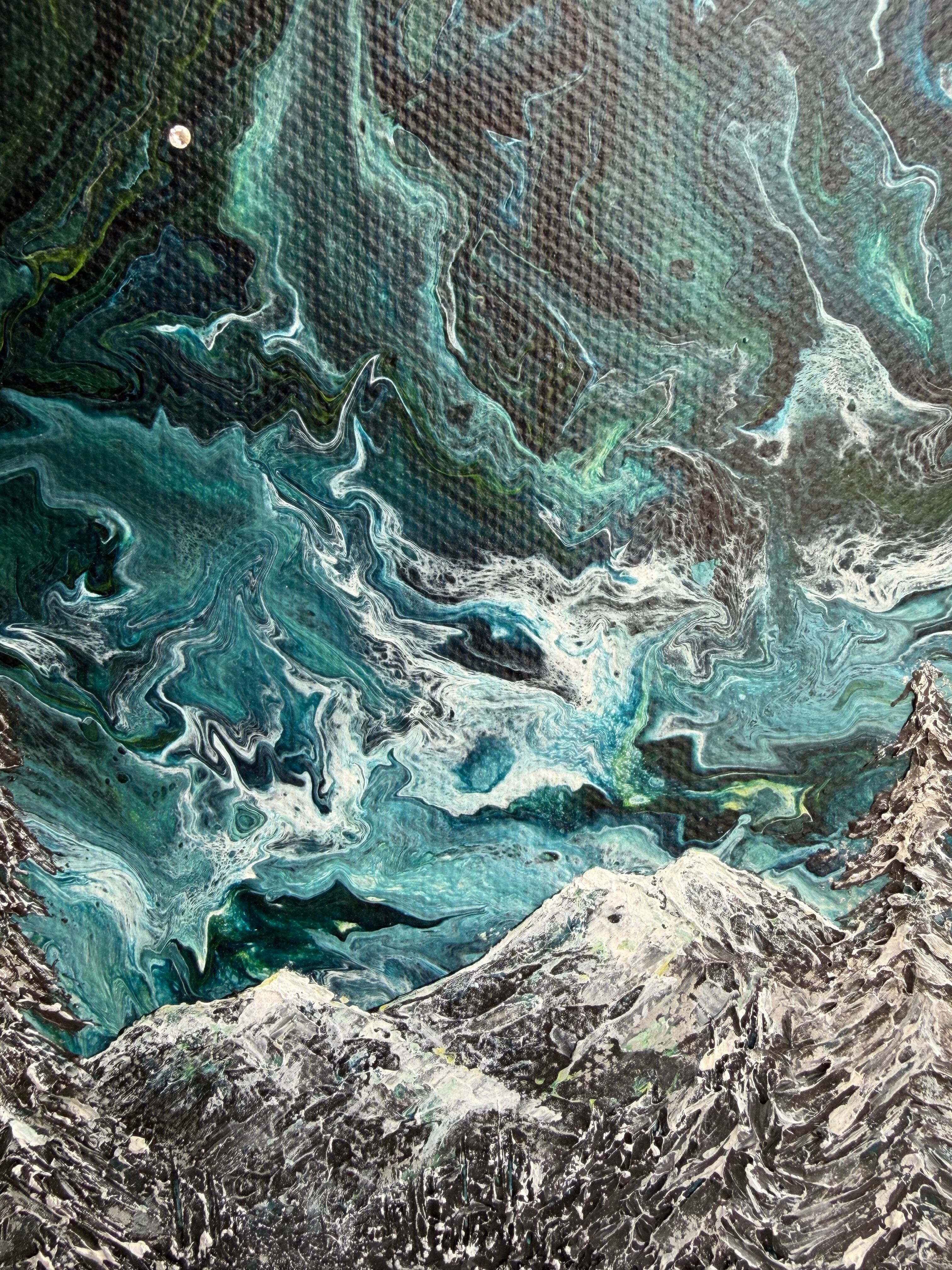 ポーリングアートとテクスチャーアートを融合させた幻想的な風景画は、シンプルでモダンな北欧スタイルのお部屋にぴったりのアイテムです!木製家具との相性も良く、男前インテリアにもマッチします♪